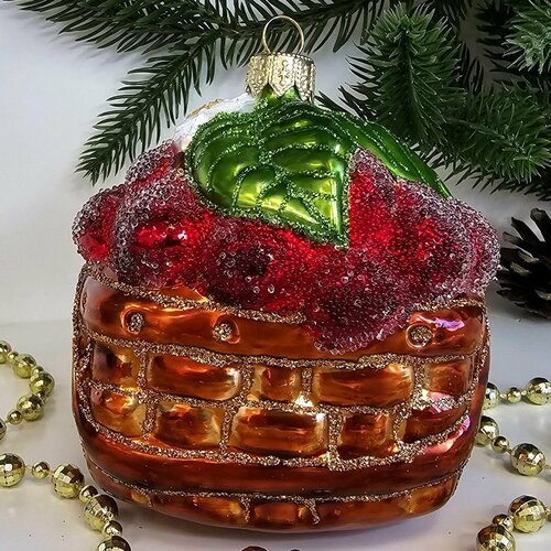 Стеклянная ёлочная игрушка Irena-Co "Корзина с вишней сахар" - это уникальное и стильное украшение для вашей новогодней елки.