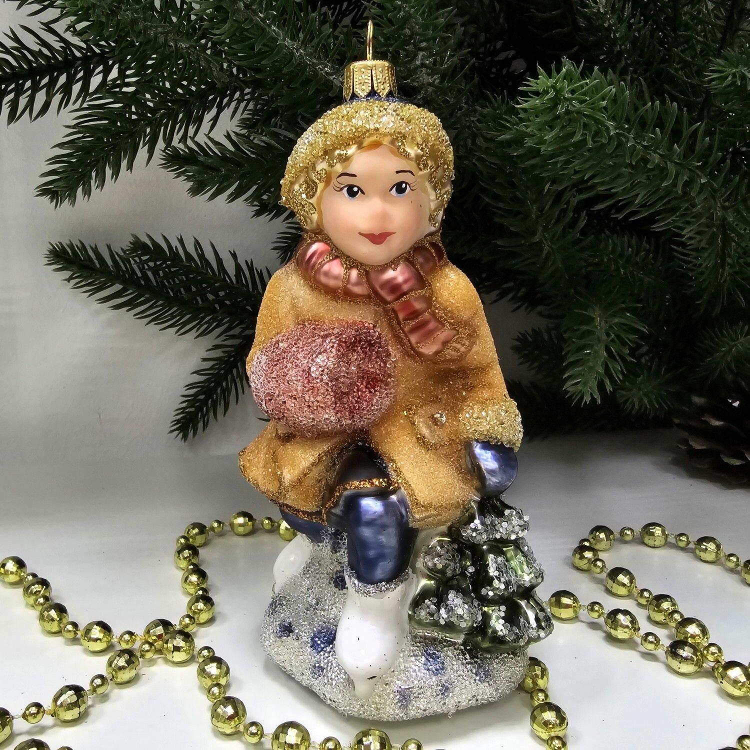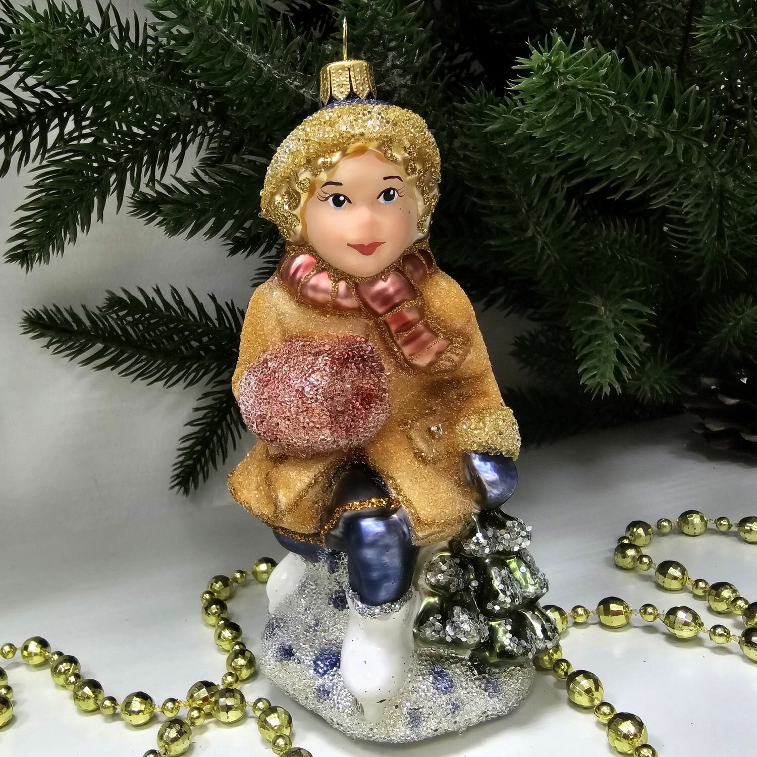В комплекте идет одна стеклянная ёлочная игрушка "Мальчик на коньках сахар".