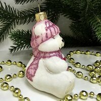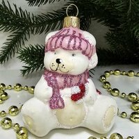 Irena-Co елочная игрушка, стекло Мишка беби флок (6,5х6,5х5см)