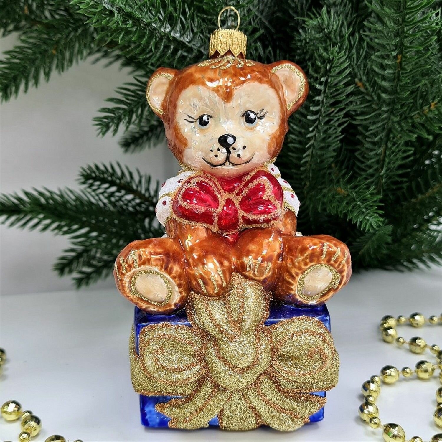 Irena-Co елочная игрушка, стекло Мишка бельгийский с бантом-1 (12,5х8х7см): сравнение цен, характеристики, фото, актуальное наличие и цены.
