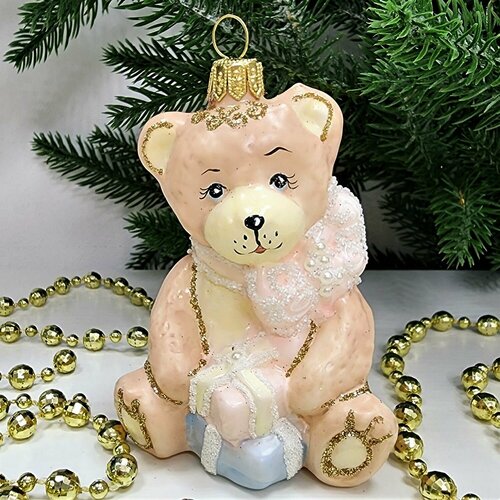 Стеклянная ёлочная игрушка "Мишка с подарками детский" - это не просто украшение, это символ праздника, который приносит радость и детям, и взрослым.