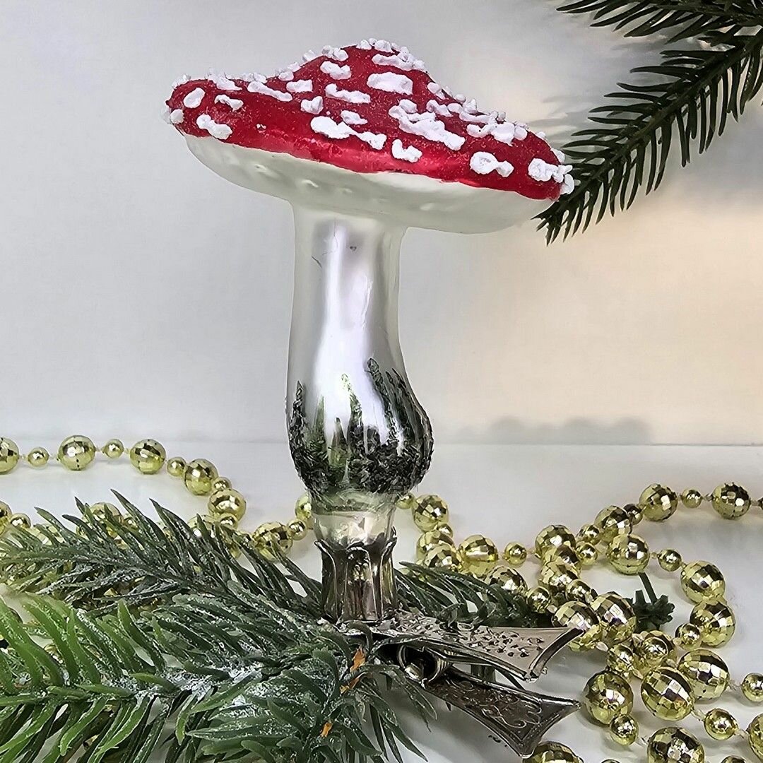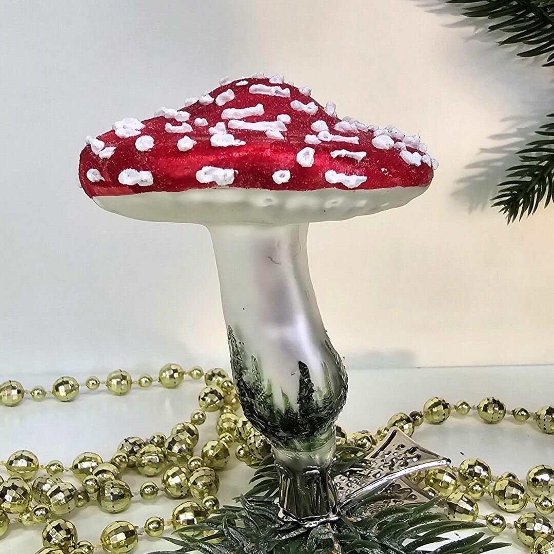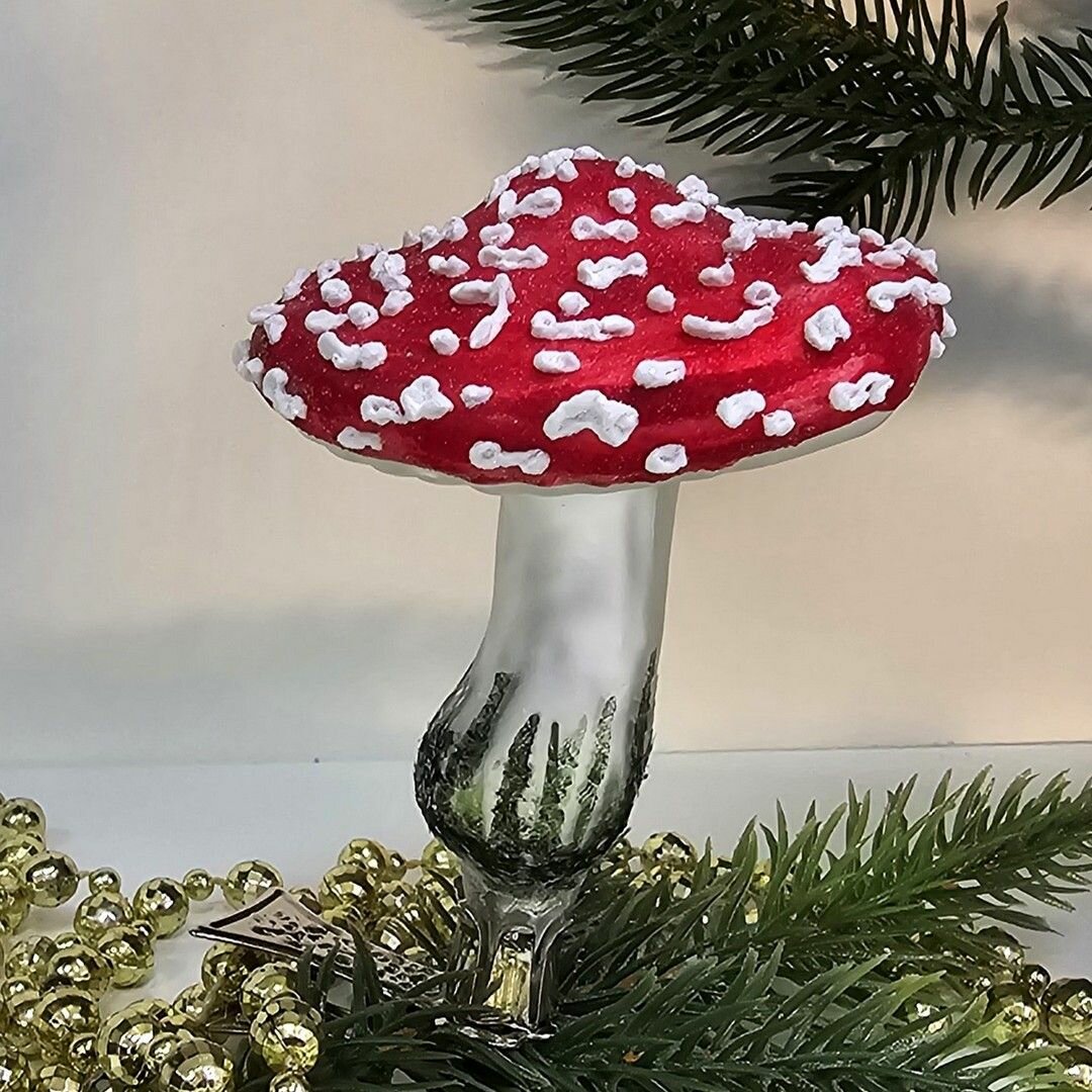 Удивительная стеклянная елочная игрушка в форме мухомора от Irena-Co станет настоящим произведением искусства на вашей елке. Каждая деталь игрушки тщательно проработана и расписана вручную, подчеркивая авторский подход к созданию елочных украшений.