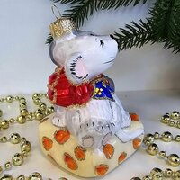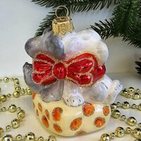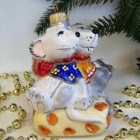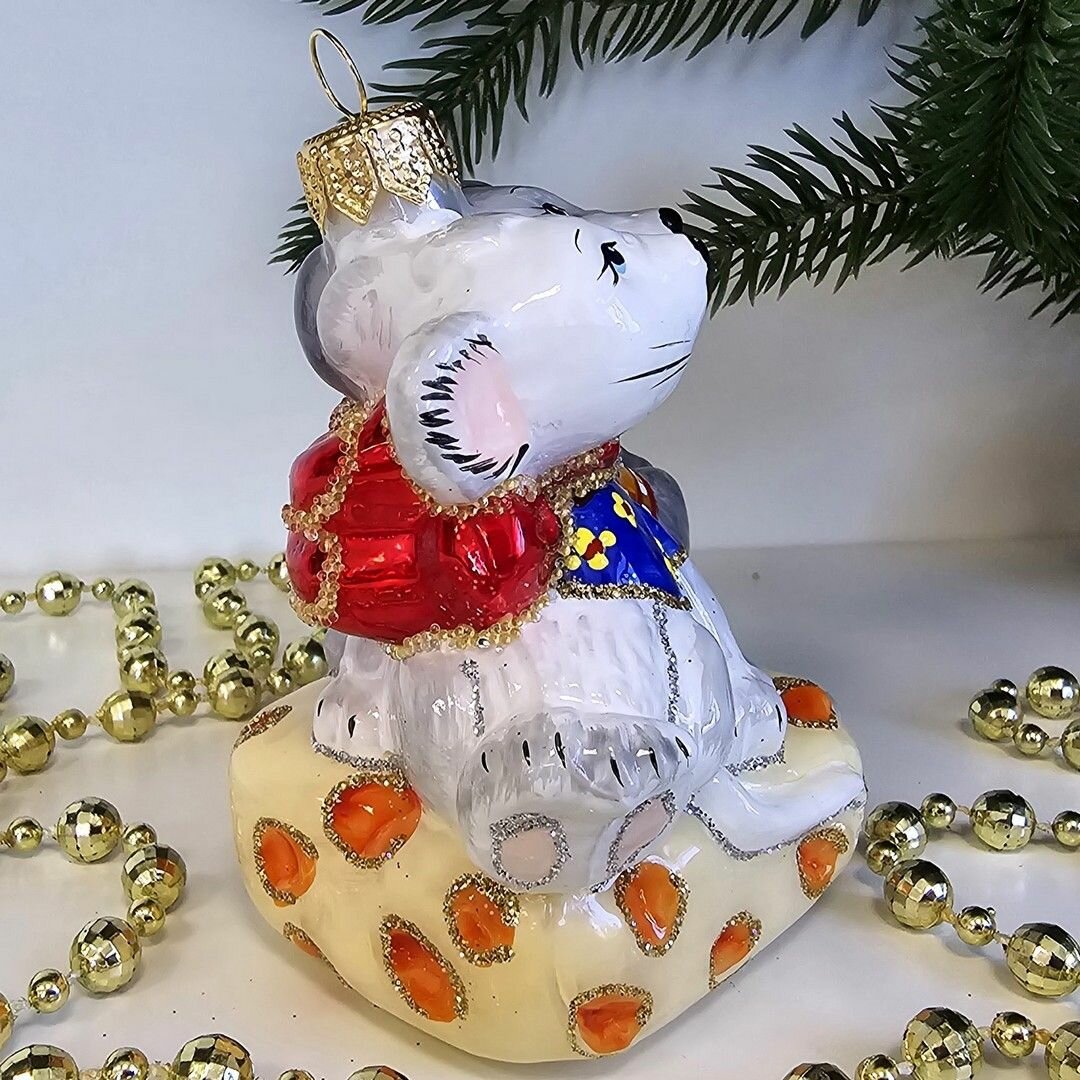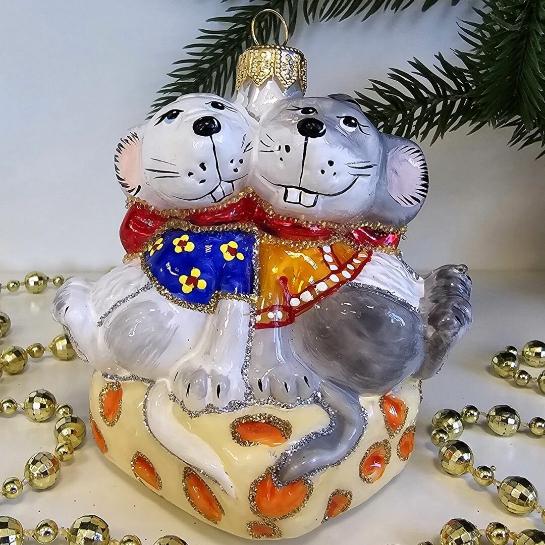 Стеклянная ёлочная игрушка "Мышки на сыре" от Irena Co - это уникальное украшение, которое станет прекрасным дополнением к праздничной атмосфере.
