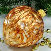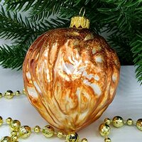 В комплекте идет одна стеклянная ёлочная игрушка Орех винтаж размером 8,5х6х6 см.