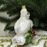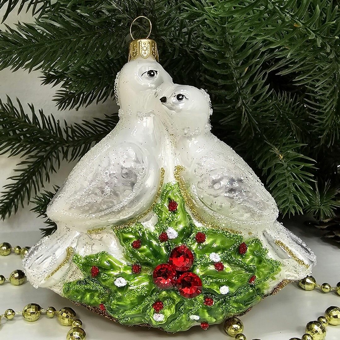 В комплекте идет одна стеклянная ёлочная игрушка "Пара голубей".