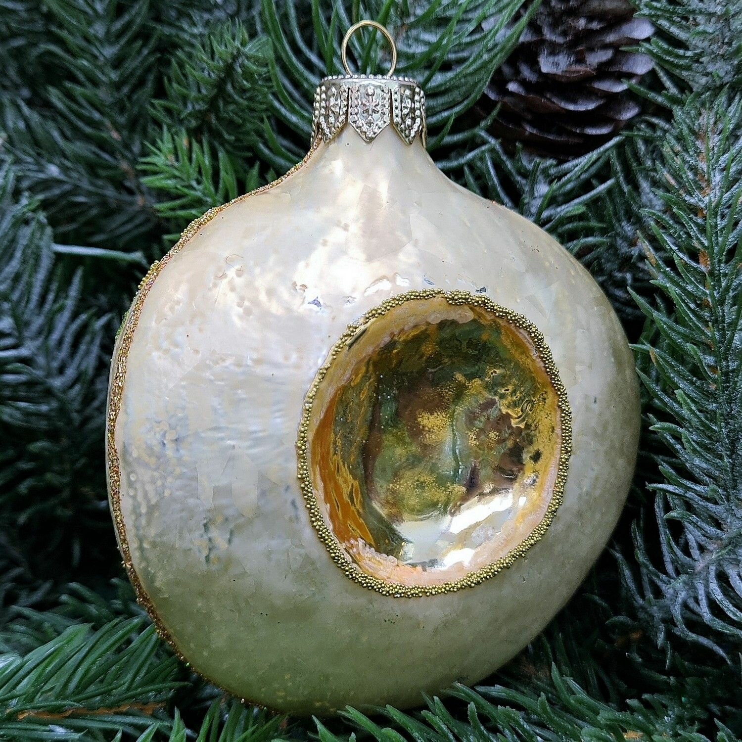 Приобретая стеклянную ёлочную игрушку "Шляпка Версаль", вы делаете ставку на качество, стиль и уникальность.