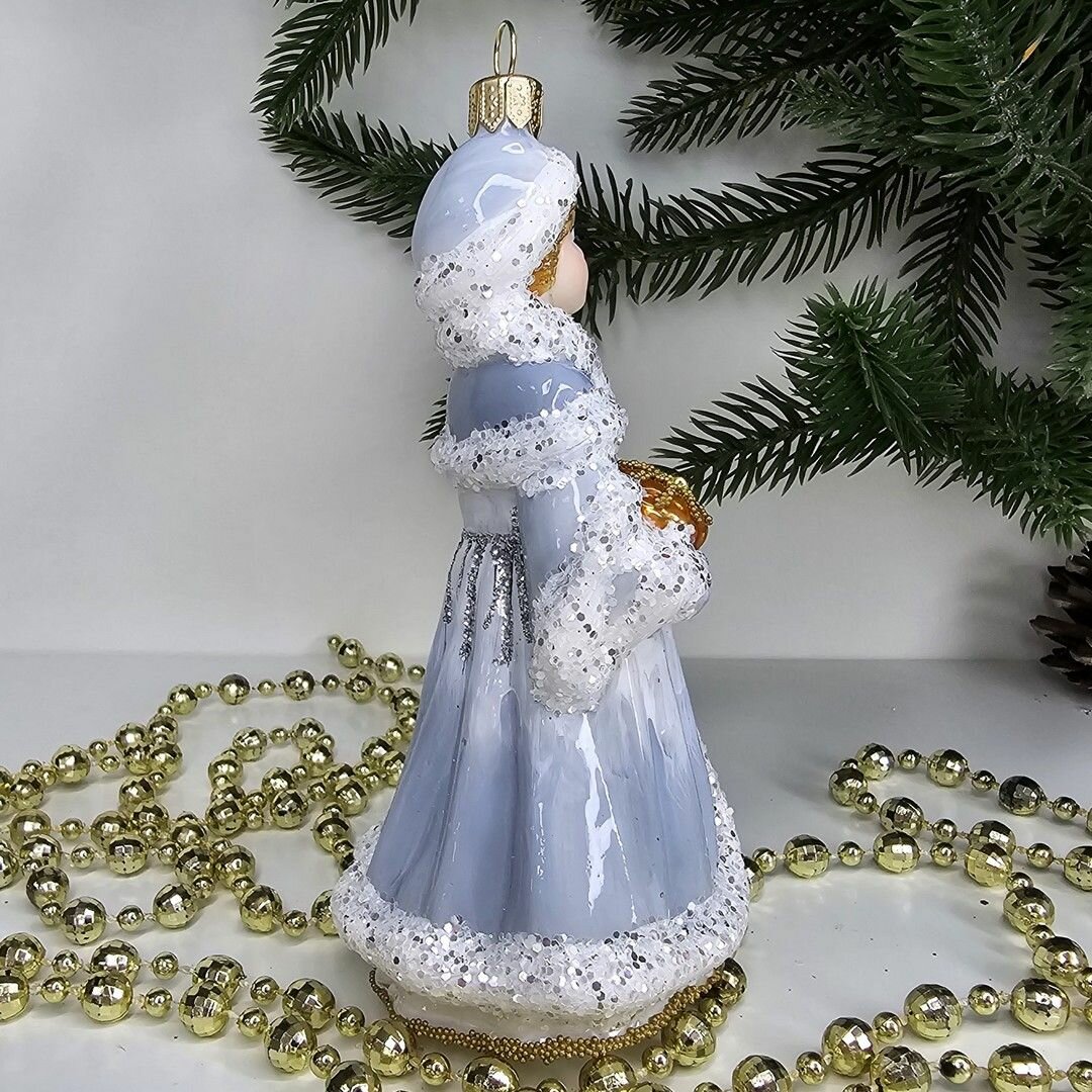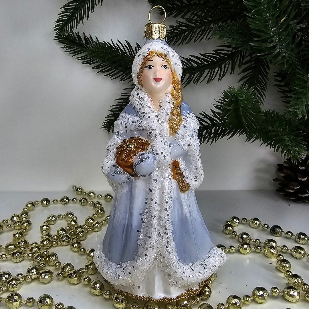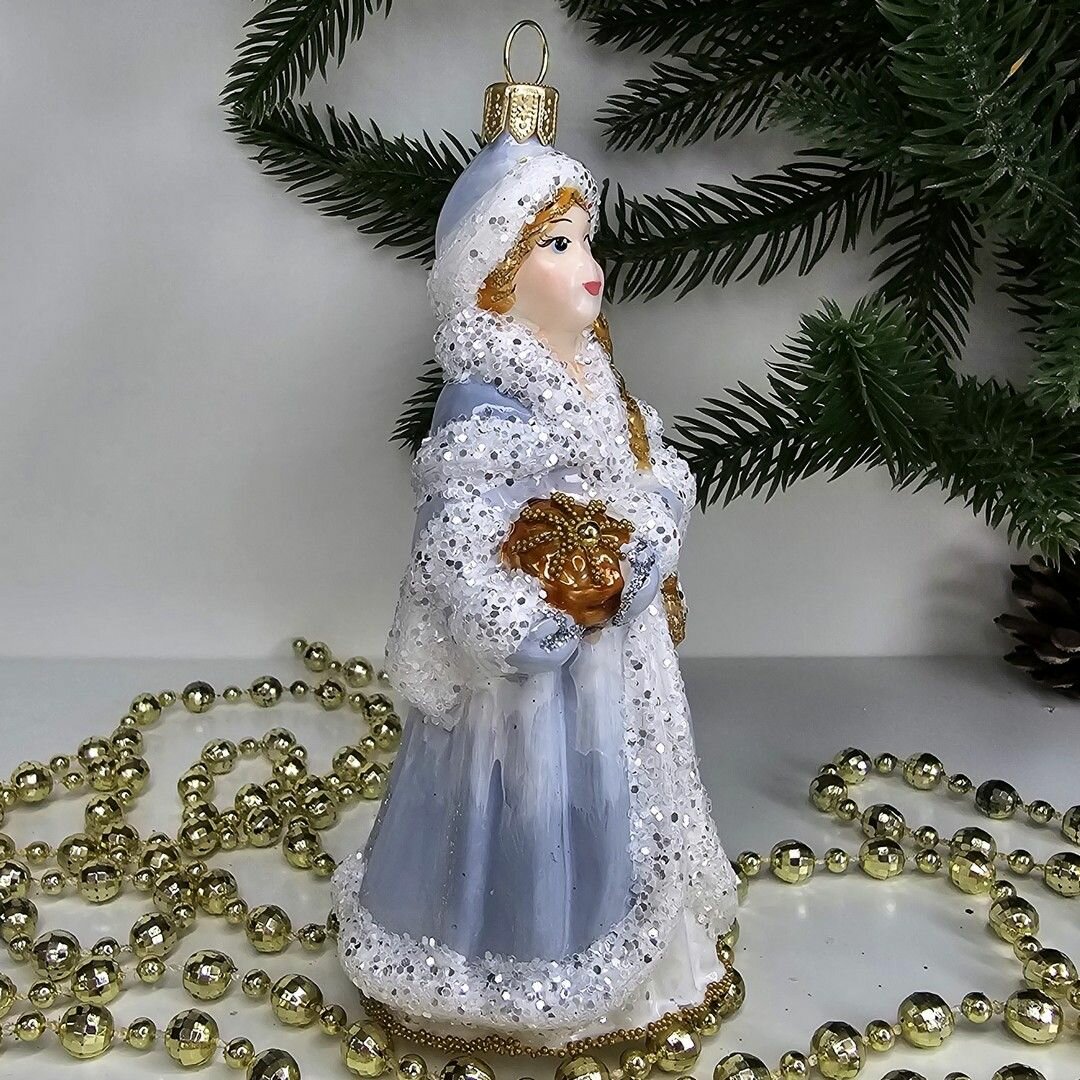 Стеклянная ёлочная игрушка Irena-Co Снегурочка со шкатулкой - это уникальное украшение, которое привнесет в ваш дом атмосферу праздника и волшебства.