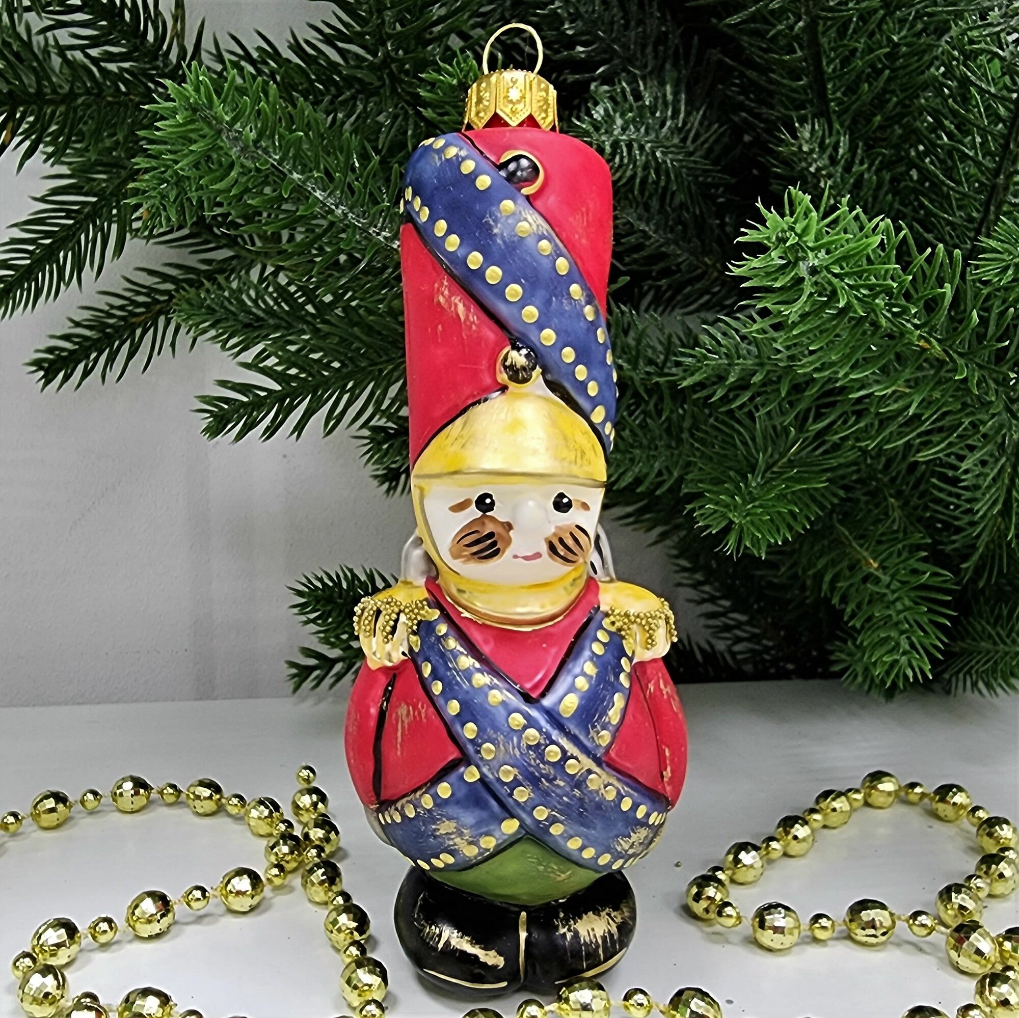 Стеклянная ёлочная игрушка "Солдатик винтаж" от Irena Co – это уникальное украшение для вашей новогодней елки.