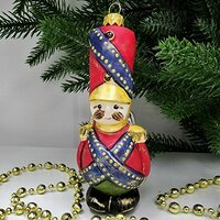 В комплекте идет одна стеклянная ёлочная игрушка "Солдатик винтаж".