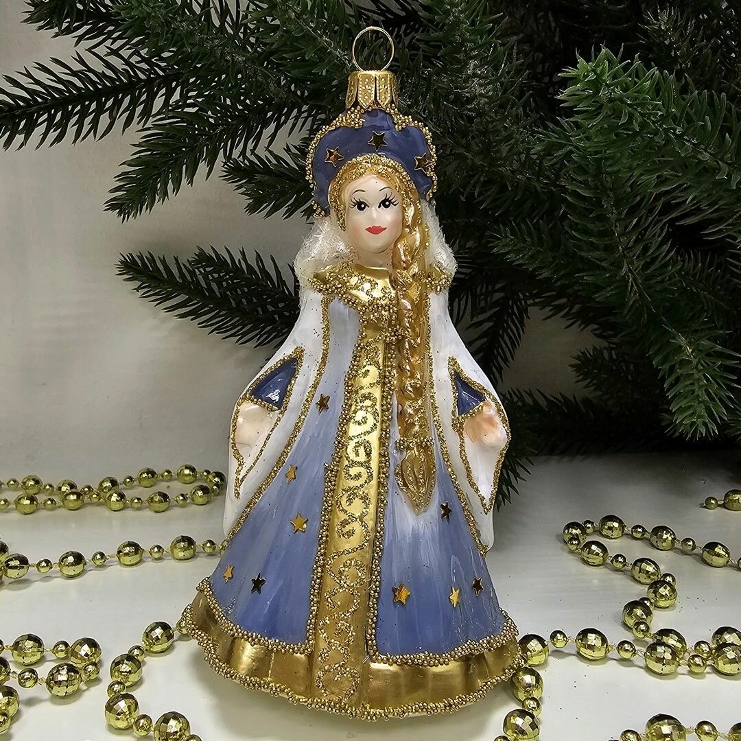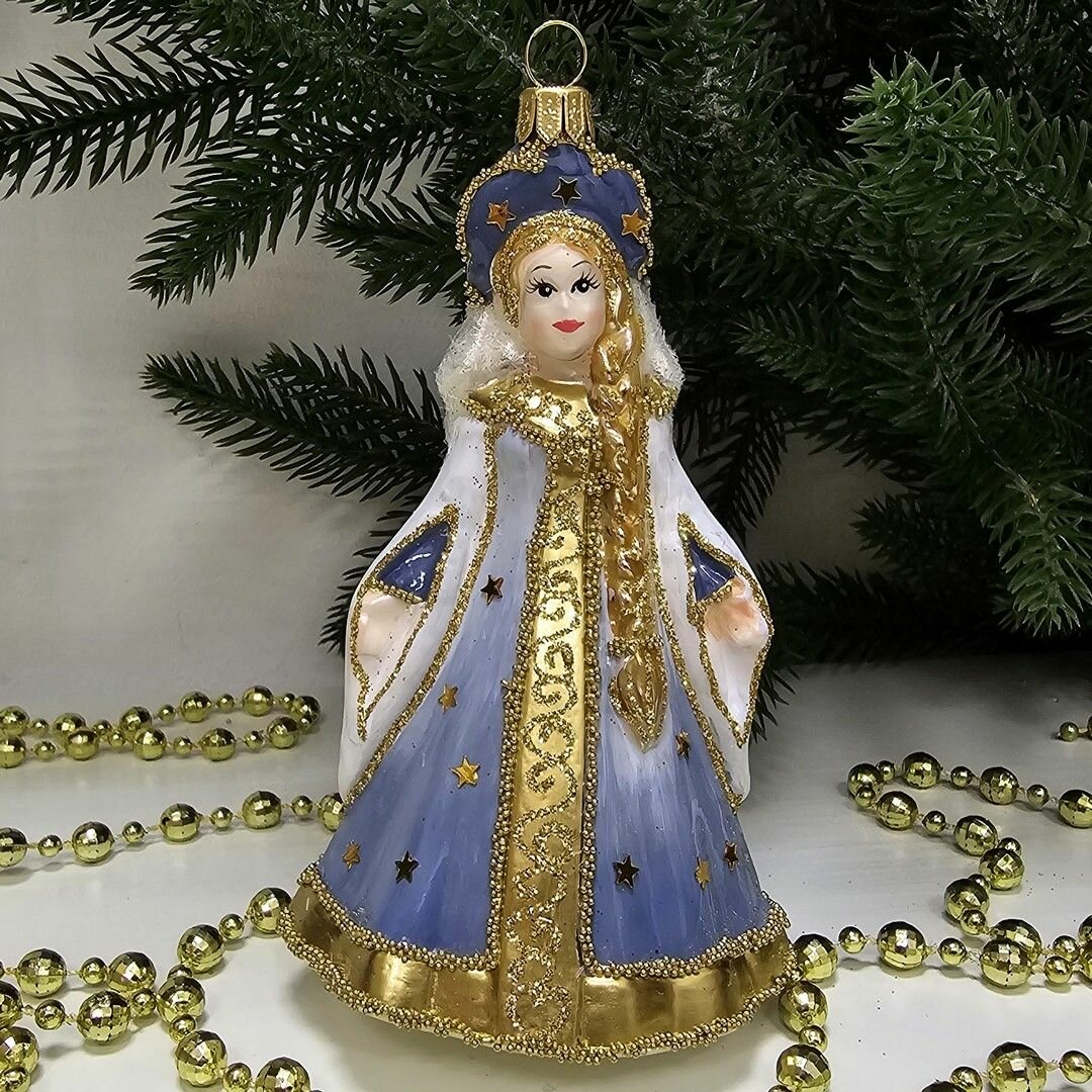Стеклянная ёлочная игрушка "Царевна голубая" от Irena-Co - это уникальное украшение, которое станет прекрасным дополнением к праздничной атмосфере.