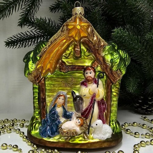 Стеклянная ёлочная игрушка Вертеп от Irena-Co – это эксклюзивное украшение, которое станет настоящим произведением искусства на вашей новогодней елке.