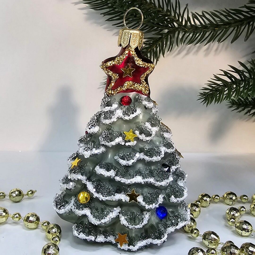 Irena-Co елочная игрушка, стекло Елочка мини с камнями (7,5х6х6см)