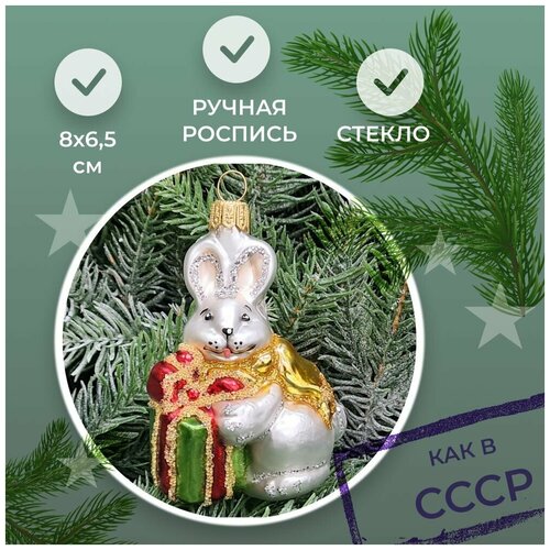 Стеклянная ёлочная игрушка Irena-Co Зайчик с подарком - это уникальное украшение, которое станет символом наступающего 2023 года.