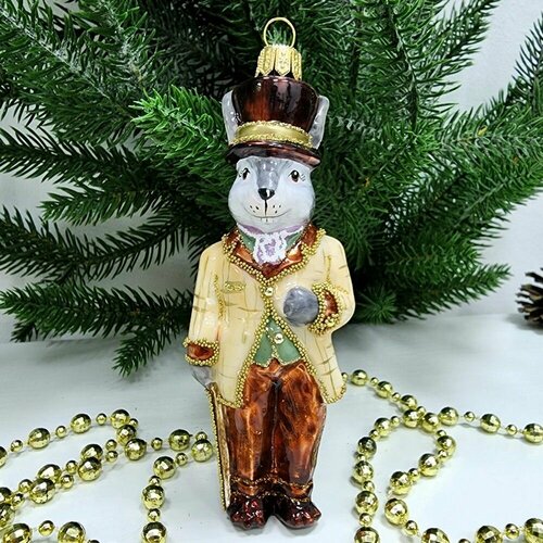 Стеклянная елочная игрушка "Заяц джентельмен" от Irena Co - это уникальное украшение, которое станет прекрасным дополнением к вашей новогодней елке. Изготовленная из стекла, эта игрушка обладает блеском и прозрачностью, а также хрупкостью и тяжестью, что придает ей ощущение красоты и изящества.