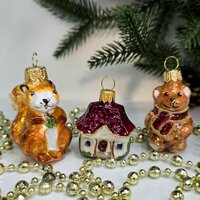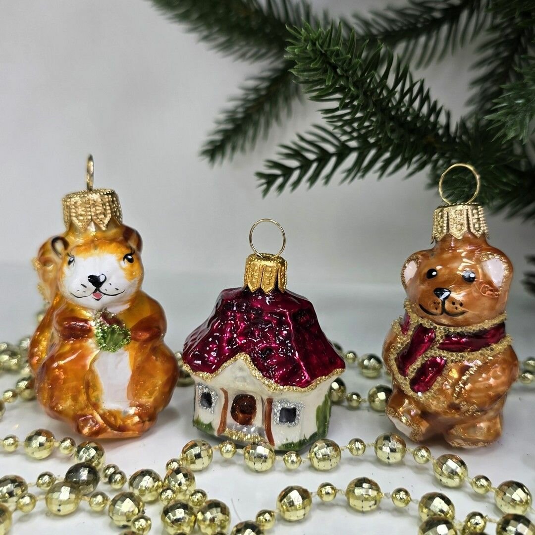 Irena-Co Набор елочных игрушек, стекло Белочка, Домик, Мишка