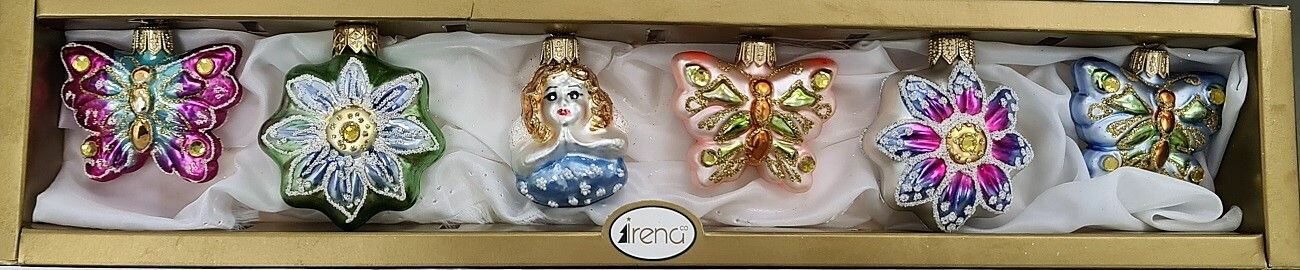 Набор стеклянных ёлочных игрушек "Малютка-1" от Irena Co - это уникальное и красочное украшение для вашей новогодней елки.