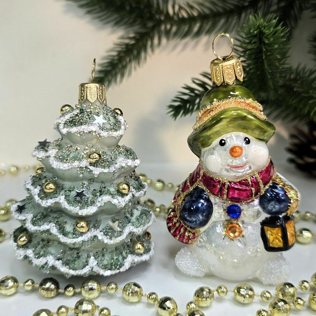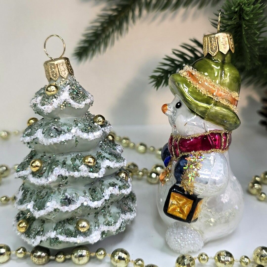 Купить Irena-Co Набор елочных игрушек, стекло Снеговик — 7,5х5х4, Ёлочка — 6,5х6х5,5 с доставкой по всей России.