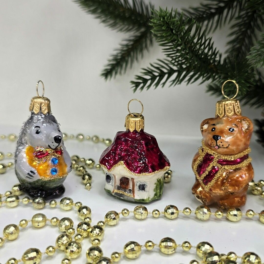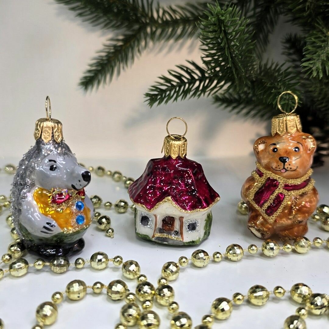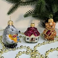 Irena-Co Набор елочных игрушек, стекло Ёжик, Домик, Мишка