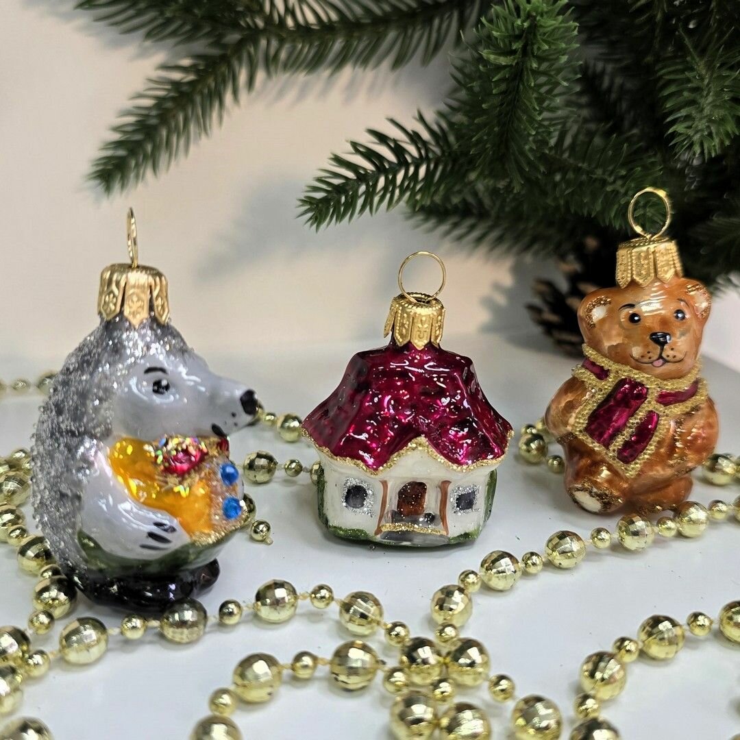 Купить Irena-Co Набор елочных игрушек, стекло Ёжик, Домик, Мишка с доставкой по всей России.
