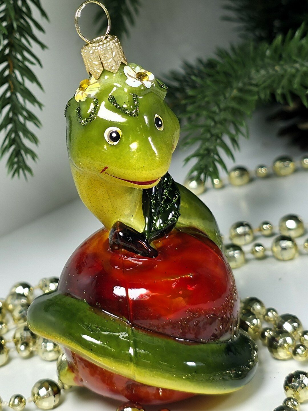 Купить Irena-Co Стеклянная елочная игрушка Змея на яблоке (8,5х6х5,5см) с доставкой по всей России.