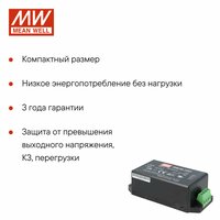 Блок питания имеет компактные размеры 109x52x34 мм и весит всего 218 грамм, что делает его удобным для установки и использования в различных условиях.