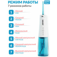 | Подробная комплектация | Чехол - 1 шт. Ирригатор - 1 шт. Инструкция - 1 шт. Зарядный кабель - 1 шт. Насадка стандартная - 2 шт. Насадка отодонтическая - 1 шт. Насадка для чистки языка - 1 шт. Насадка для зубного налета - 1 шт. Насадка парадонтального канала - 1 шт. |