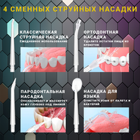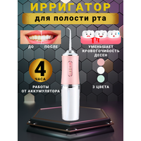 Купить Ирригатор для полости рта и зубов для зубов, 4 сменных насадок, 3 режимов для чистки зубов и брекетов языка, розовый с доставкой по всей России.