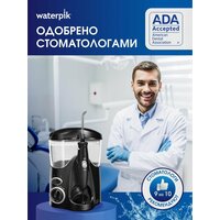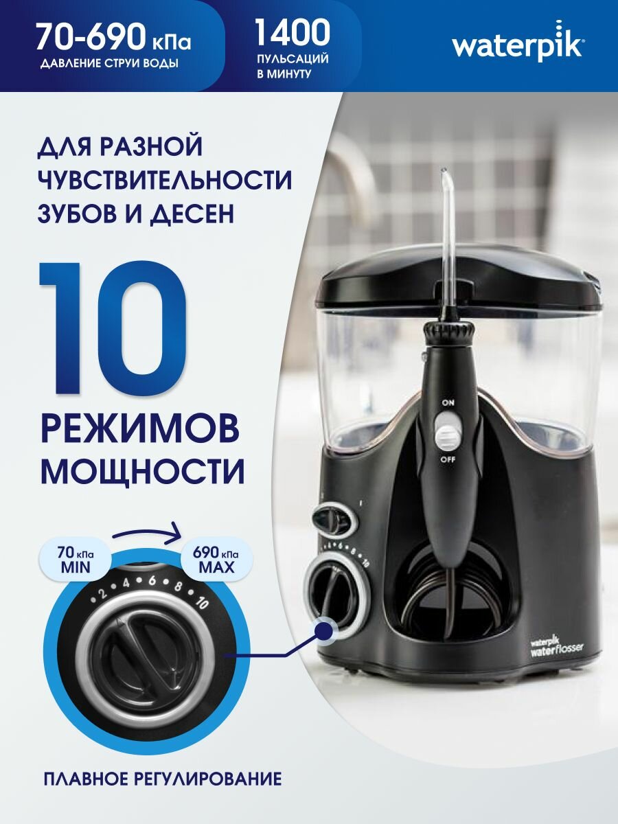 | Подробная комплектация | Стандартные насадки 2 шт; Насадка для ухода за брекетами 1 шт; Насадка для ухода за имплантами 1 шт; Насадка для ухода за десневыми карманами 1 шт; Насадка-щётка для ухода за ортопедическими конструкциями 1 шт; Насадка для чистки языка 1 шт; Ирригатор Waterpik WP-100; Инструкция. |