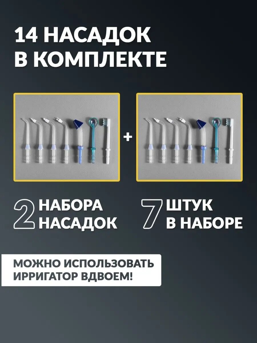 | Подробная комплектация | Ирригатор, 14 штук насадок, сумка, зарядка, инструкция |