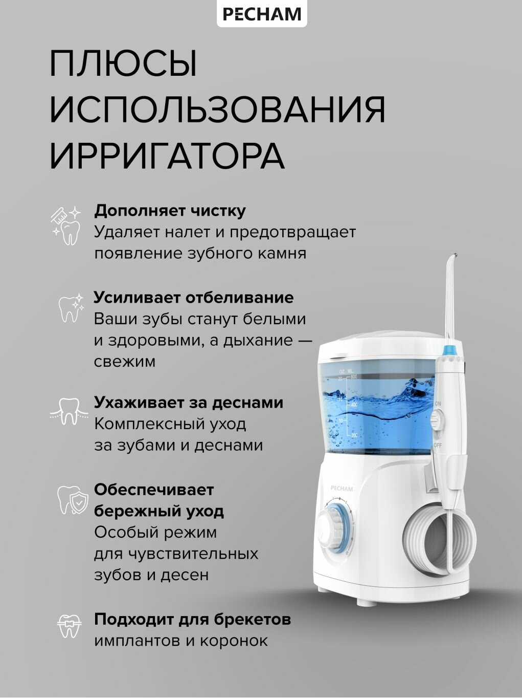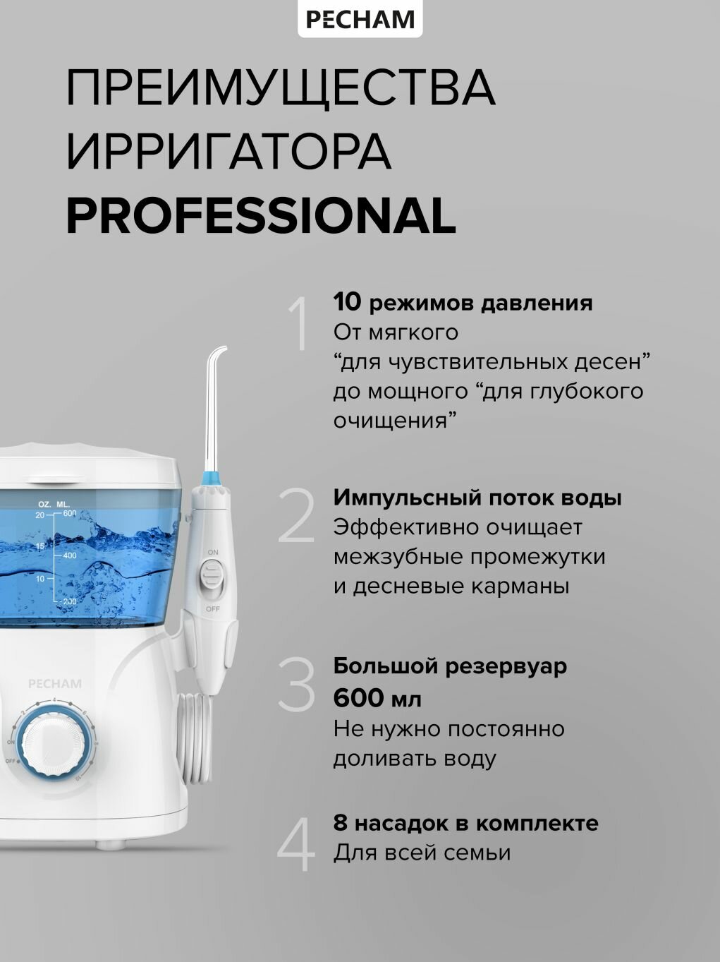 | Число режимов/регулировок ирригатора | 10 |