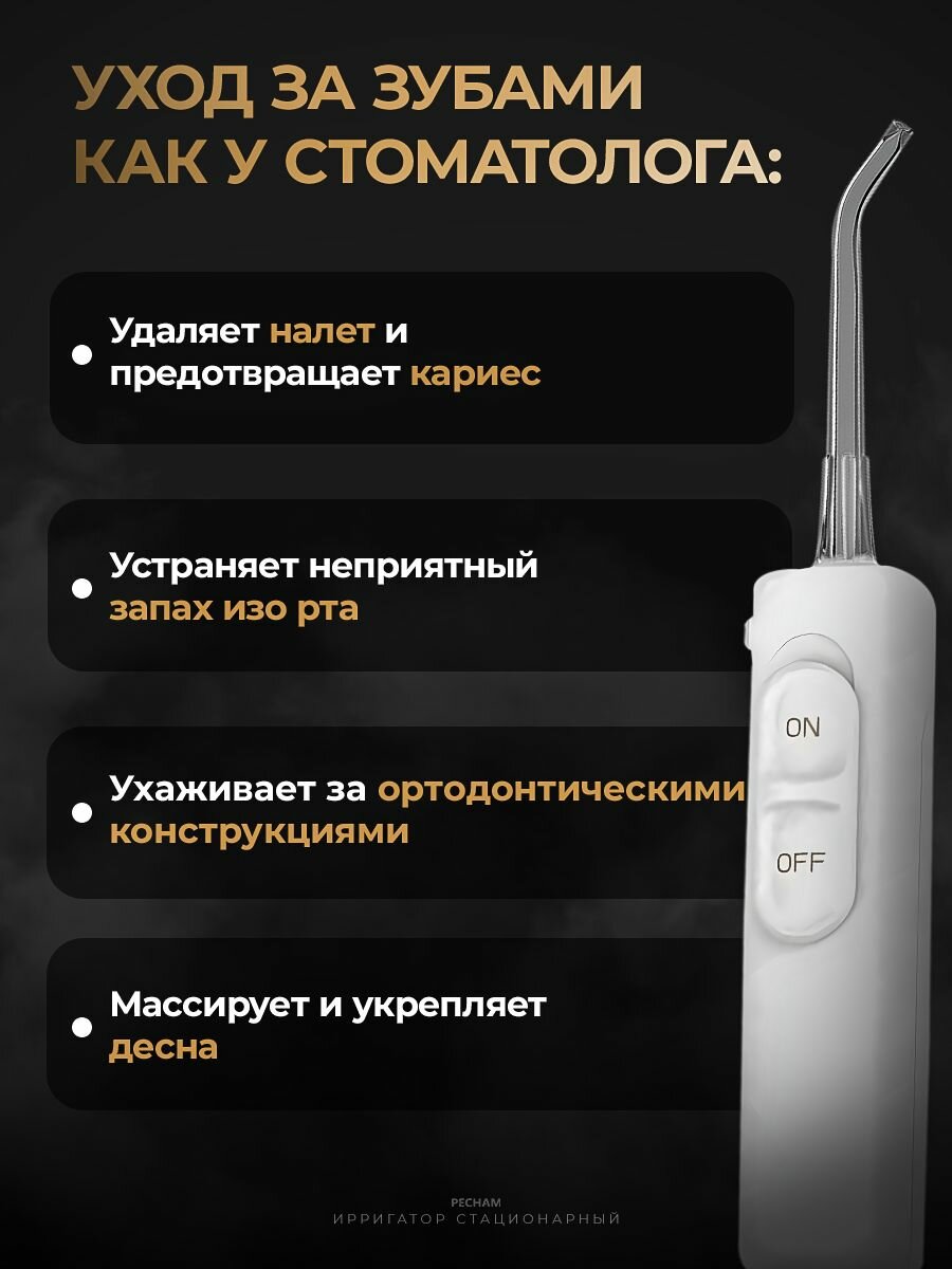| Насадки | для струйной чистки, для чистки имплантов и коронок, для чистки языка, насадка-щетка, ортодонтическая (для брекетов), пародонтологическая (для десен) |