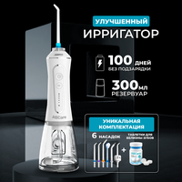 Емкость резервуара составляет 300 мл, что позволяет проводить длительную и эффективную чистку. Устройство имеет компактные размеры и легкий вес, а сумка для переноски сделает данный ирригатор максимально удобным для хранения и транспортировки.