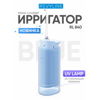 Купить Ирригатор для зубов и десен Revyline RL 840 портативный с УФ-лампой, голубой, мини слайдер, для брекетов, складной с доставкой по всей России.