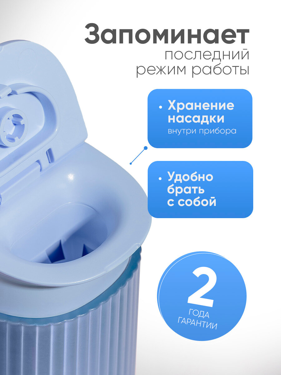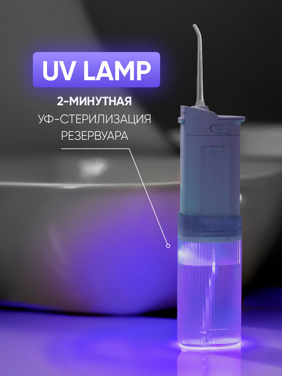 Ирригатор для зубов и десен Revyline RL 840 портативный с УФ-лампой, голубой, мини слайдер, для брекетов, складной