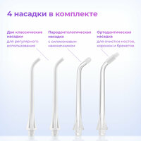 | Подробная комплектация | Ирригатор - 1 шт.; классические насадки - 2 шт.; USB-кабель - 1 шт.; руководство по эксплуатации - 1 шт.; чехол для хранения - 1 шт. |