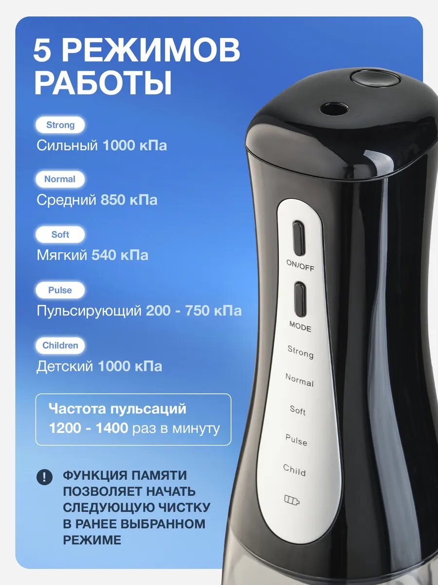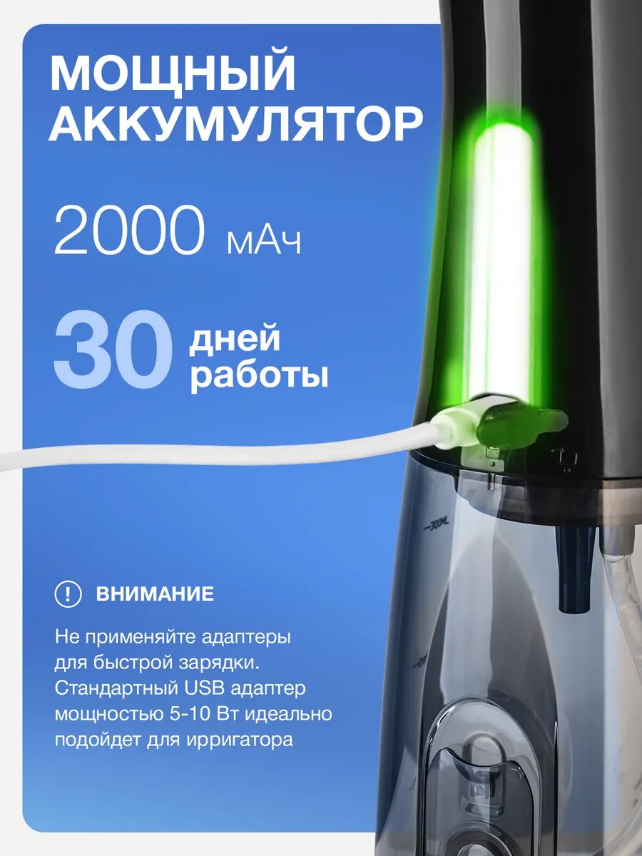 | Дополнительная информация | имеет литиевую батарею на 1800 мАч, Частота пульсации струи - 1500-3000 Имп/Мин |