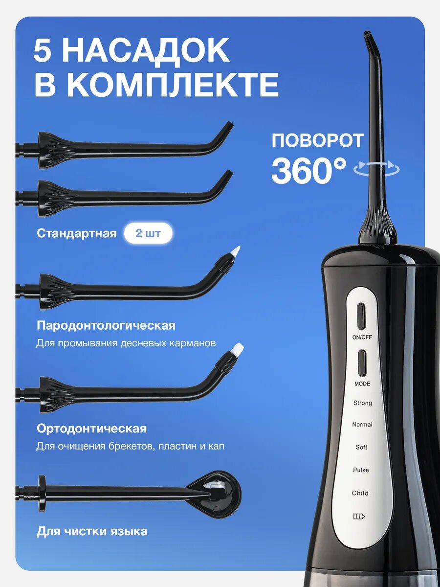 | Подробная комплектация | Ирригатор, 14 штук насадок, сумка, зарядка, инструкция |