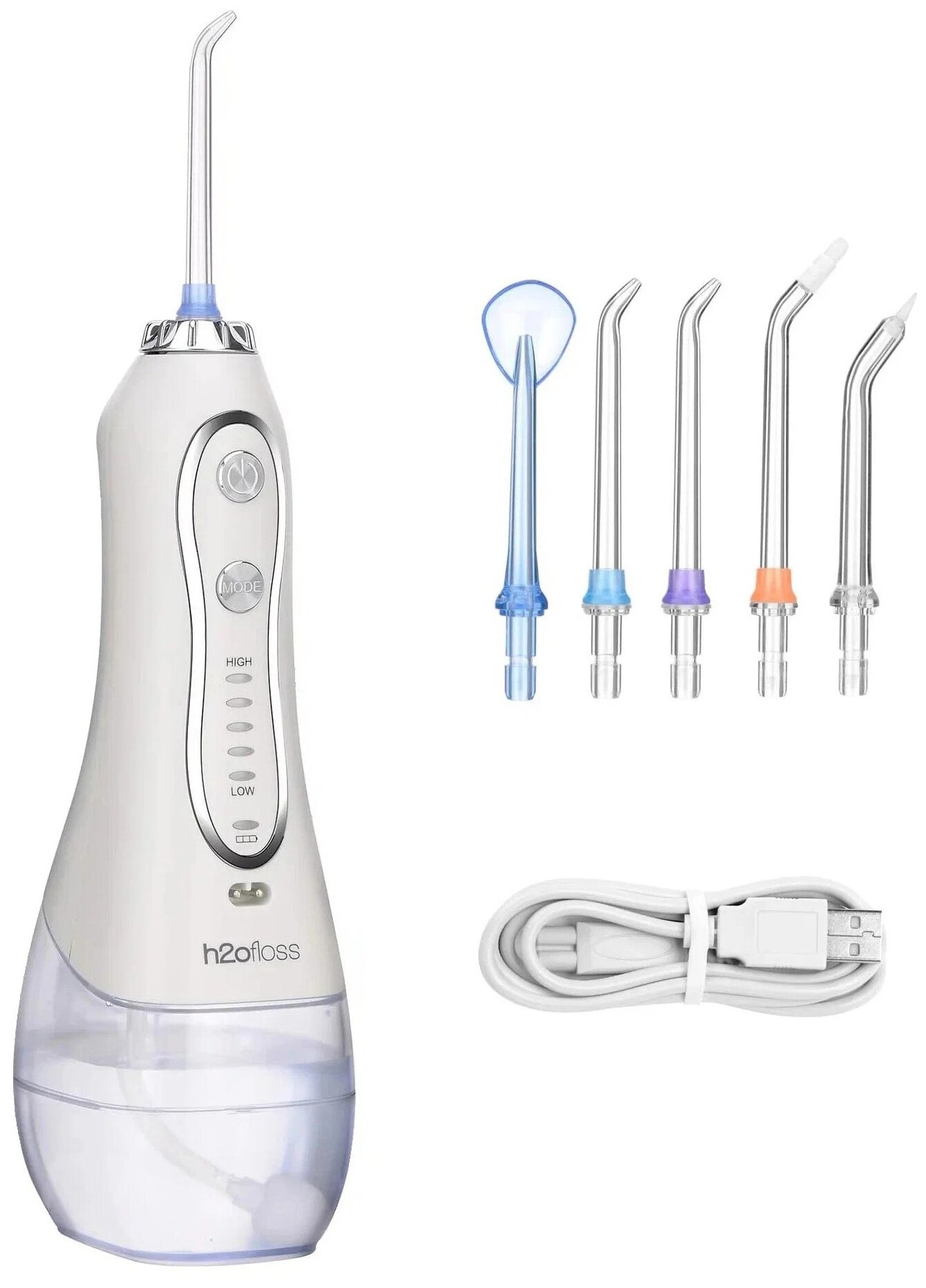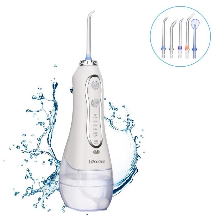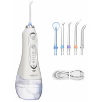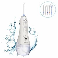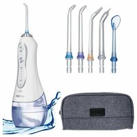 Портативный ирригатор для полости рта - незаменимый помощник при уходе за гигиеной полости рта как дома, так и в отпуске или командировке. Имеет 5 режимов работы, набор из 6 разных сменных насадок, частота импульсов струи 1400-1700 имп/мин, работает от встроенного аккумулятора, рассчитанный на 4 часа непрерывной работы без подзарядки. Основной принцип работы – подача струи воды под давлением. В отличие от обычной зубной щетки налет и остатки пищи легко удаляются даже из самых труднодоступных мест. Десны массажируются, что способствует улучшению кровообращения, а следовательно и питания тканей. Правильная санация полости рта – лучшая профилактика развития заболеваний, залог красивой белоснежной улыбки. Прибор убирает остатки пищи, налет, очищает зубную эмаль и межзубные пространства, пародонтальные карманы, помогает при уходе за брекетами, имплантами, винирами, коронками, мостами и прочими ортодонтическими конструкциями, очищает язык, слизистые оболочки ротовой полости и носа. Устройство эффективно убирает налет, предотвращает появление кариеса, борется с образованием зубного камня, предотвращает кровоточивость десен и неприятный запах изо рта. В комплект ирригатора входит 6 насадок: насадка-щетка для первичной чистки и устранения крупных загрязнений; стандартная насадка струйного типа для ежедневного ухода; для чистки языка; пародонтологическая для десен и пародонтальных карманов; ортодонтическая для брекетов, мостов, коронок, имплантов; назальная для чистки носовой полости. Многообразие режимов работы позволяет подобрать наиболее подходящий в зависимости от целей и задач: мягкий подойдет для чувствительных, поврежденных участков или для начинающих пользователей; слабый подходит при лечении ортодонтических проблем; средний режим позволяет эффективно очищать от налета и остатков пищи; сильный режим предназначен для эффективного удаления межзубных пространств и полостей десен; суперсильный высокочувствительный импульс подходит при глубокой чистке. Вращающаяся головка на 360 градусов позволяет очищать самые труднодоступные места. Удобный эргономичный дизайн с перфорированной задней частью прибора позволяет его легко удерживать в руке. Дорожный ирригатор оснащен резервуаром для воды объемом 300 мл. Наполнять резервуар можно прямо из крана. USB-кабель для подзарядки входит в комплект, заряжается от любого устройства, емкость аккумулятора 2000 мАч. Герметичная заглушка слота зарядки и горловина с силиконовым уплотнителем предотвращают попадание влаги внутрь. Прибор изготовлен из антибактериальных материалов. Для использования ирригатора не требуется специальных навыков и умений. Благодаря своей портативности его легко брать с собой в поездки и путешествия.