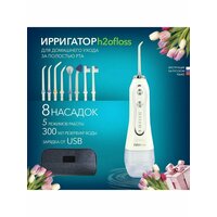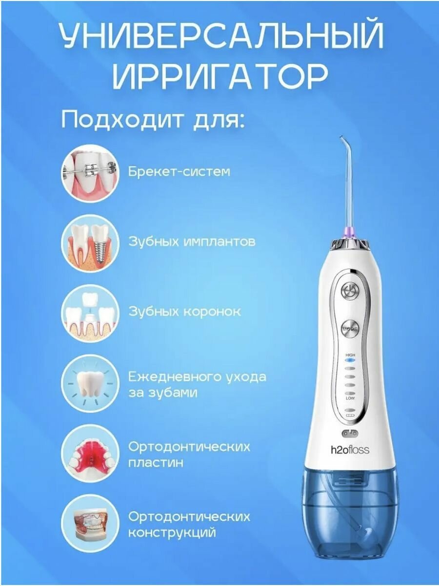 Ирригатор портативный H2ofloss беспроводной для полости рта и чистки зубов, языка, брекетов со сменными насадками, 5 режимов, 8 насадок, емкость 300 мл, текстильный чехол для хранения: сравнение цен, характеристики, фото, актуальное наличие и цены.