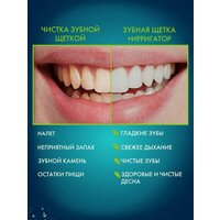 Портативный ирригатор для полости рта - незаменимый помощник при уходе за гигиеной полости рта как дома, так и в отпуске или командировке. Имеет 5 режимов работы, набор из 8 разных сменных насадок, частота импульсов струи 1400-1700 имп/мин, работает от встроенного аккумулятора, рассчитанный на 4 часа непрерывной работы без подзарядки. Основной принцип работы – подача струи воды под давлением. В отличие от обычной зубной щетки налет и остатки пищи легко удаляются даже из самых труднодоступных мест. Десны массажируются, что способствует улучшению кровообращения, а следовательно и питания тканей. Правильная санация полости рта – лучшая профилактика развития заболеваний, залог красивой белоснежной улыбки. Прибор убирает остатки пищи, налет, очищает зубную эмаль и межзубные пространства, пародонтальные карманы, помогает при уходе за брекетами, имплантами, винирами, коронками, мостами и прочими ортодонтическими конструкциями, очищает язык, слизистые оболочки ротовой полости и носа. Устройство эффективно убирает налет, предотвращает появление кариеса, борется с образованием зубного камня, предотвращает кровоточивость десен и неприятный запах изо рта. В комплект ирригатора входит 8 насадок: насадка-щетка для первичной чистки и устранения крупных загрязнений; стандартная насадка струйного типа для ежедневного ухода; для чистки языка; пародонтологическая для десен и пародонтальных карманов; ортодонтическая для брекетов, мостов, коронок, имплантов; назальная для чистки носовой полости. Многообразие режимов работы позволяет подобрать наиболее подходящий в зависимости от целей и задач: мягкий подойдет для чувствительных, поврежденных участков или для начинающих пользователей; слабый подходит при лечении ортодонтических проблем; средний режим позволяет эффективно очищать от налета и остатков пищи; сильный режим предназначен для эффективного удаления межзубных пространств и полостей десен; суперсильный высокочувствительный импульс подходит при глубокой чистке. Вращающаяся головка на 360 градусов позволяет очищать самые труднодоступные места. Удобный эргономичный дизайн с перфорированной задней частью прибора позволяет его легко удерживать в руке. Дорожный ирригатор оснащен резервуаром для воды объемом 300 мл. Наполнять резервуар можно прямо из крана. USB-кабель для подзарядки входит в комплект, заряжается от любого устройства, емкость аккумулятора 2000 мАч. Герметичная заглушка слота зарядки и горловина с силиконовым уплотнителем предотвращают попадание влаги внутрь. Прибор изготовлен из антибактериальных материалов. Для использования ирригатора не требуется специальных навыков и умений. Благодаря своей портативности его легко брать с собой в поездки и путешествия.