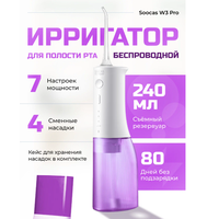 | Подробная комплектация | ирригатор, кабель USB-Type C, насадки, футляр для хранения насадок, инструкция |