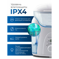 | Дополнительная информация | количество режимов уровня давления – 17, частота пульсации 1200-1700; ультрафиолетовая дезинфекция с автоматическим отключением через 15 минут; тип регулировки давления: ступенчатая; частота пульсации воды: 1700 импульсов/мин |