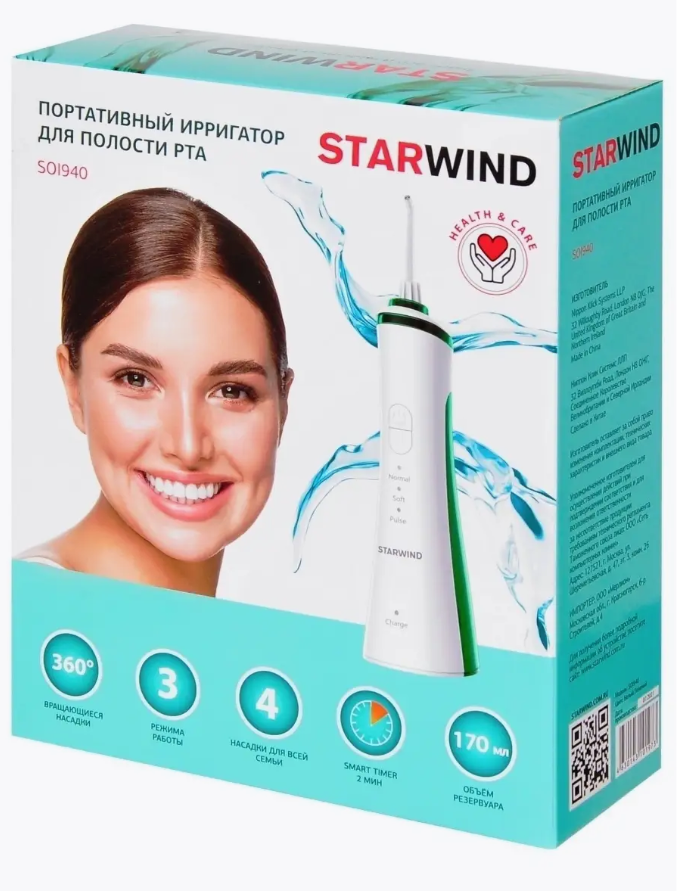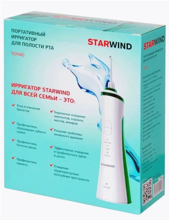 | Подробная комплектация | Ирригатор Starwind SOI940инструкциягарантийный талон |