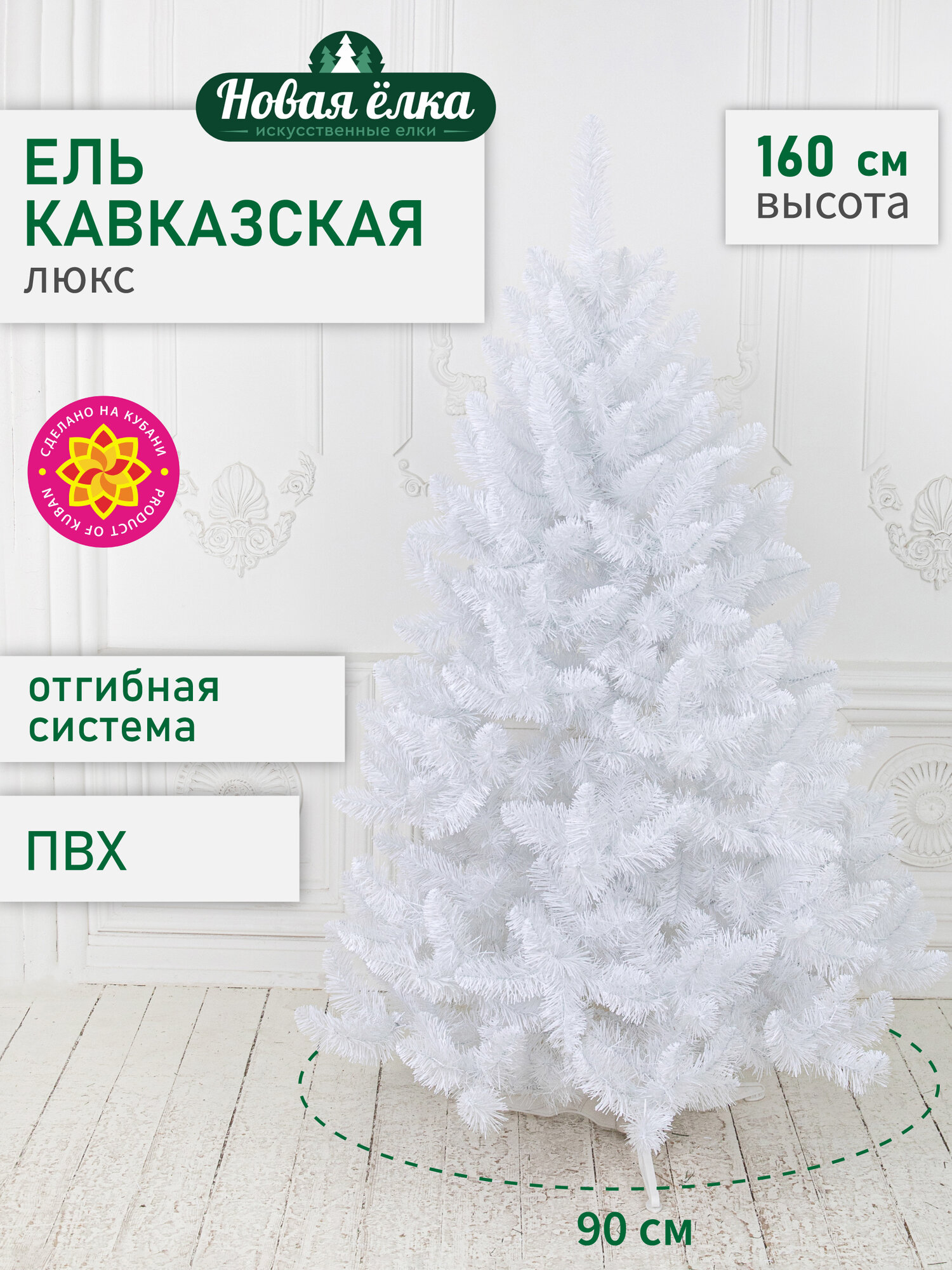 Искусственная ель Новая ёлка «Кавказская Люкс» белая стриженные кончики 1,6 м: сравнение цен, характеристики, фото, актуальное наличие и цены.