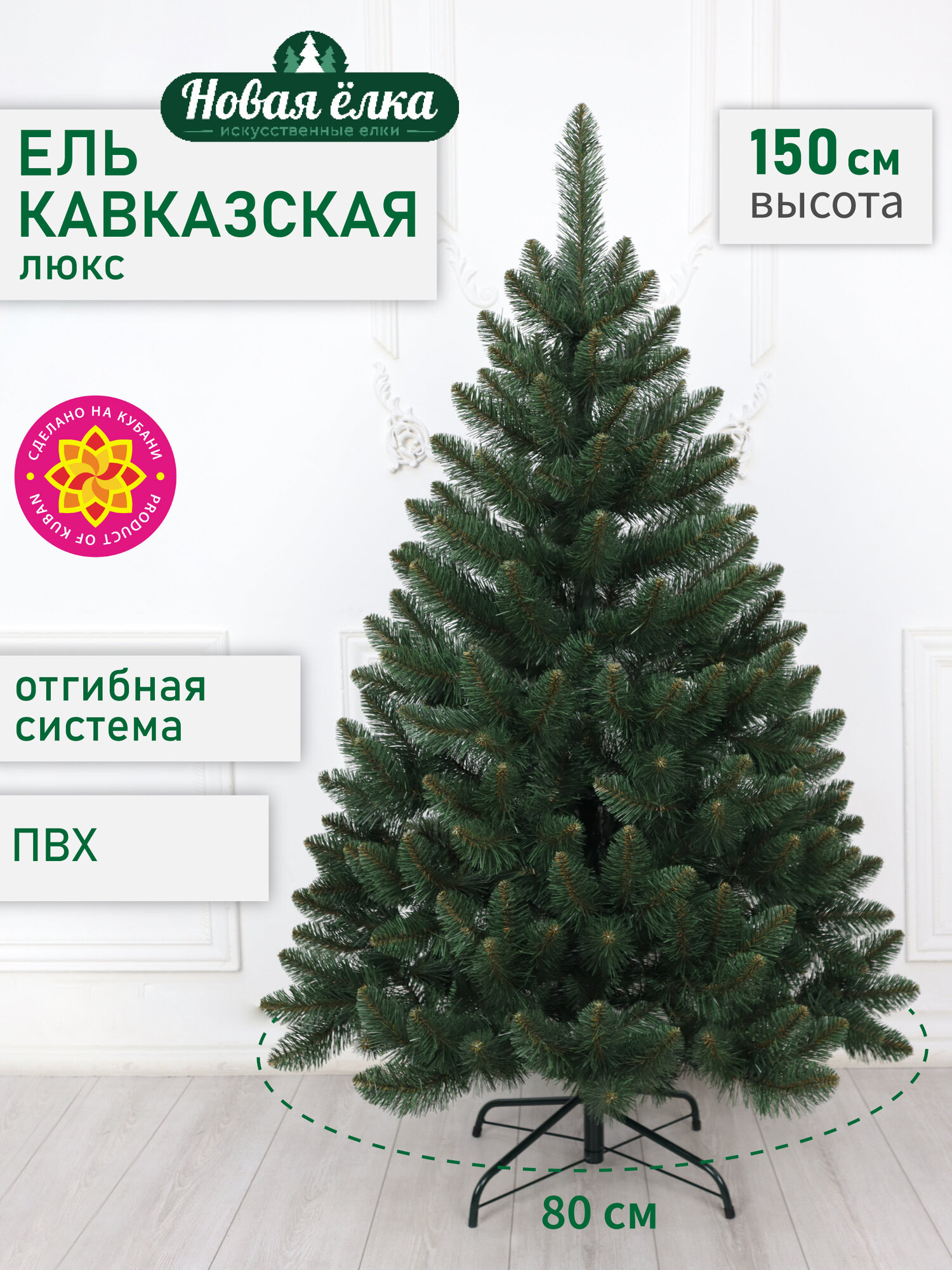 Искусственная ель Новая ёлка «Кавказская Люкс», ПВХ, зеленая, 1,5 м.: сравнение цен, характеристики, фото, актуальное наличие и цены.