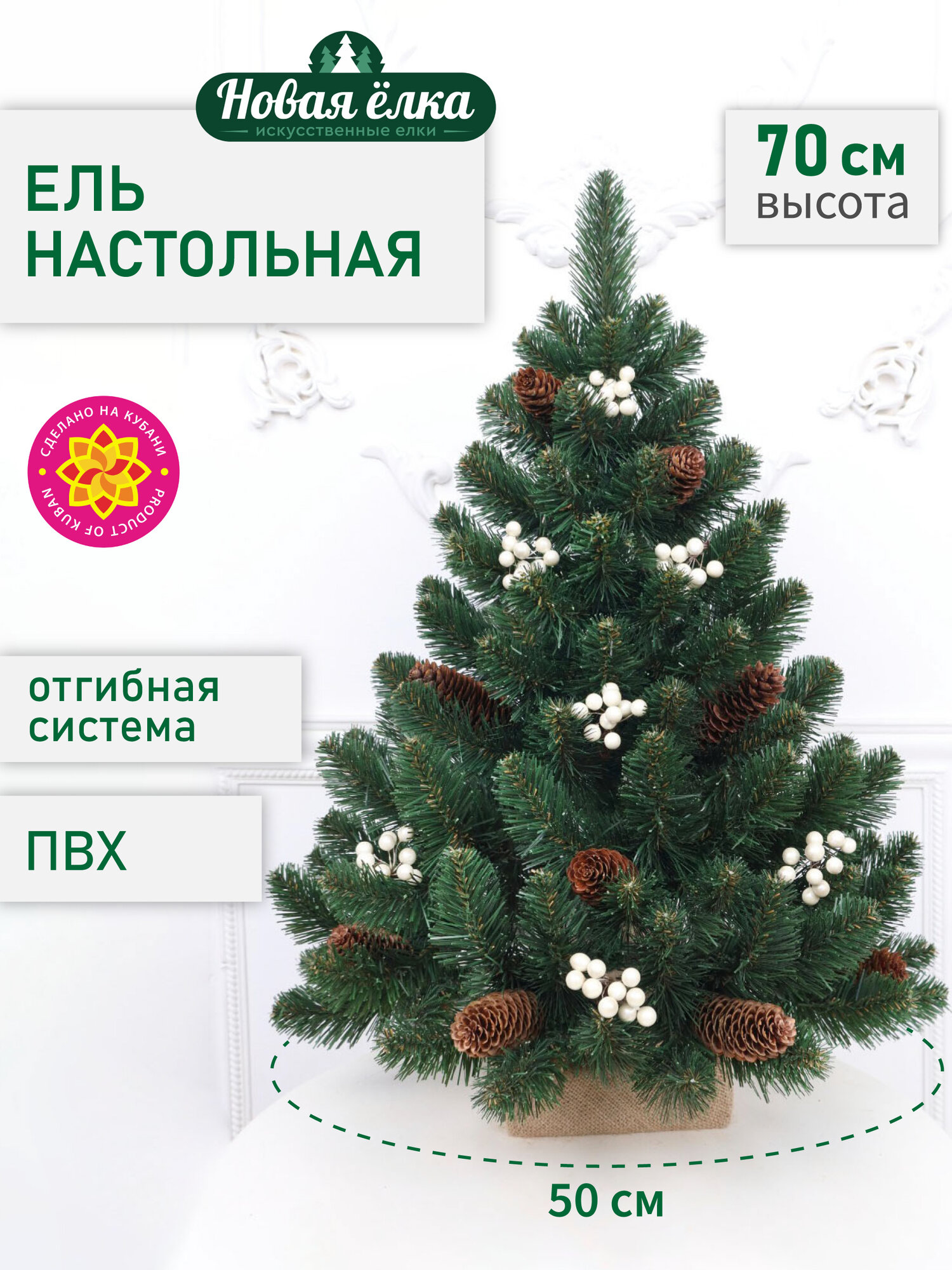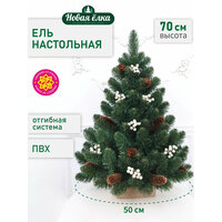 Купить Искусственная ель Новая ёлка ПВХ, настольная, шишки, белые ягоды, 0,7 м с доставкой по всей России. Искусственная ель Новая ёлка ПВХ, настольная, шишки, белые ягоды, 0,7 м: сравнение цен, характеристики, фото, актуальное наличие и цены.