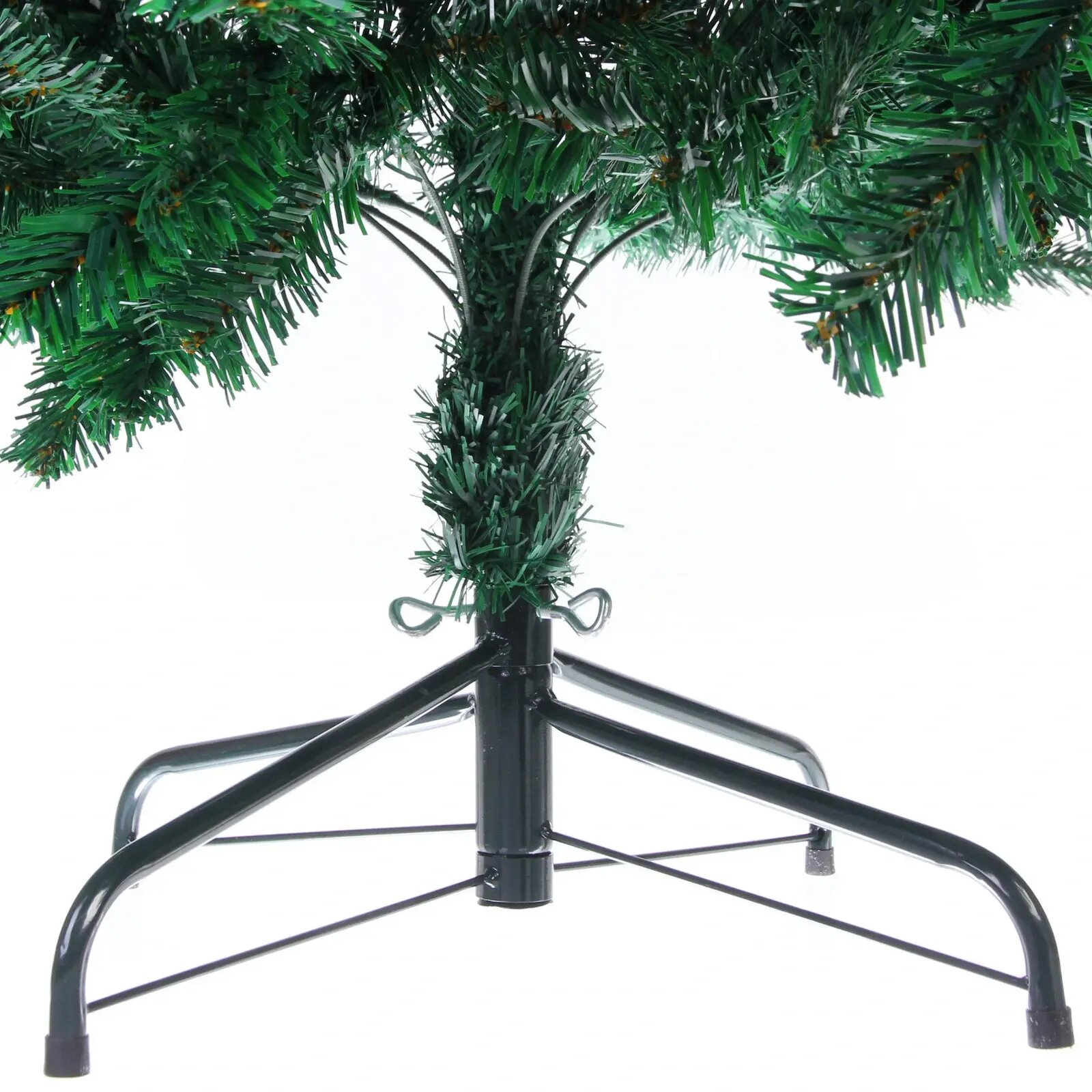 высота елки: 120 см, количество веток: 408, цвет елки: зеленый, материал: пвх, подставка: черная металлическая с тремя ножками, способ сборки: разборная, елка не украшена, елка конусной формы.