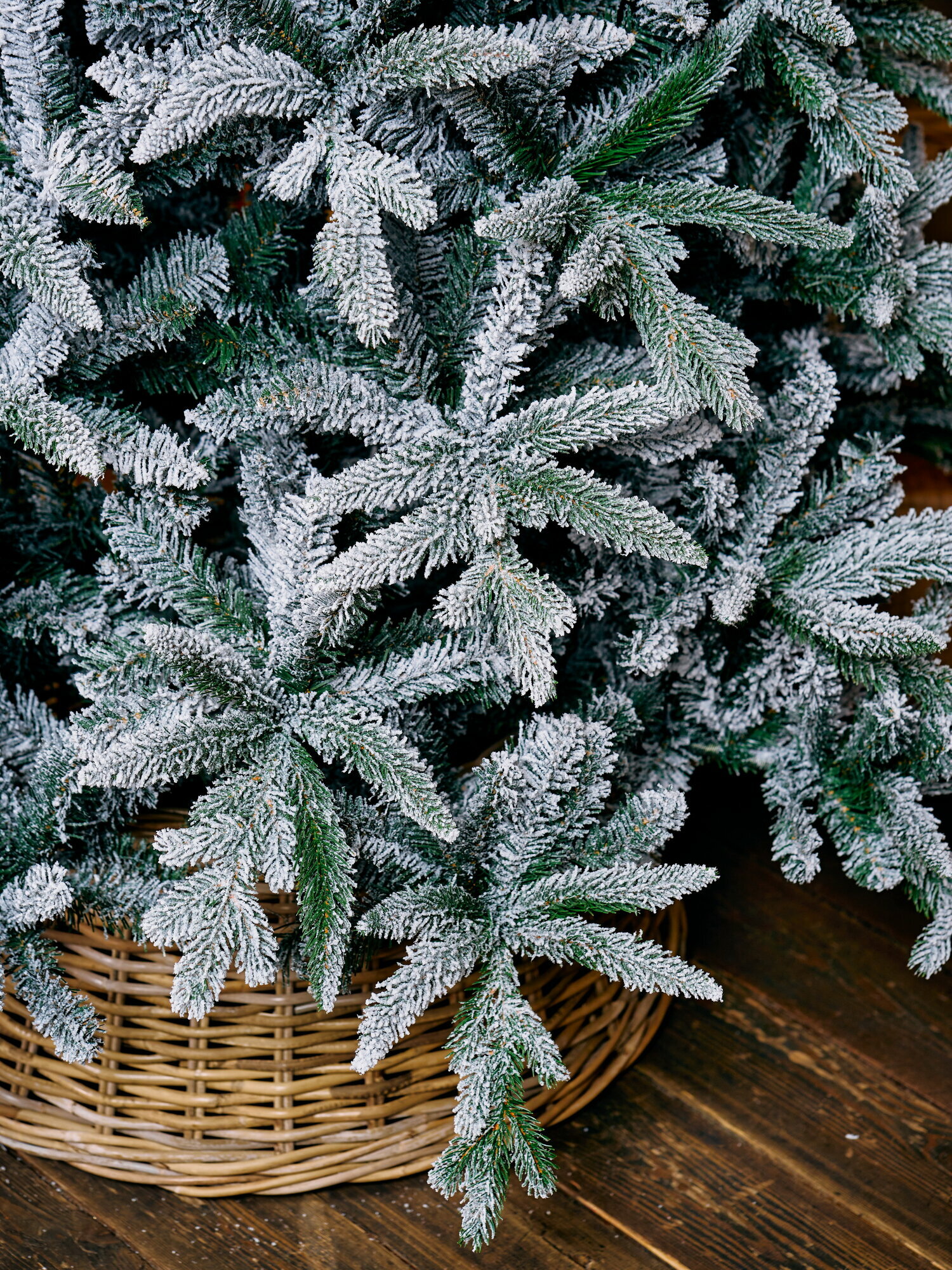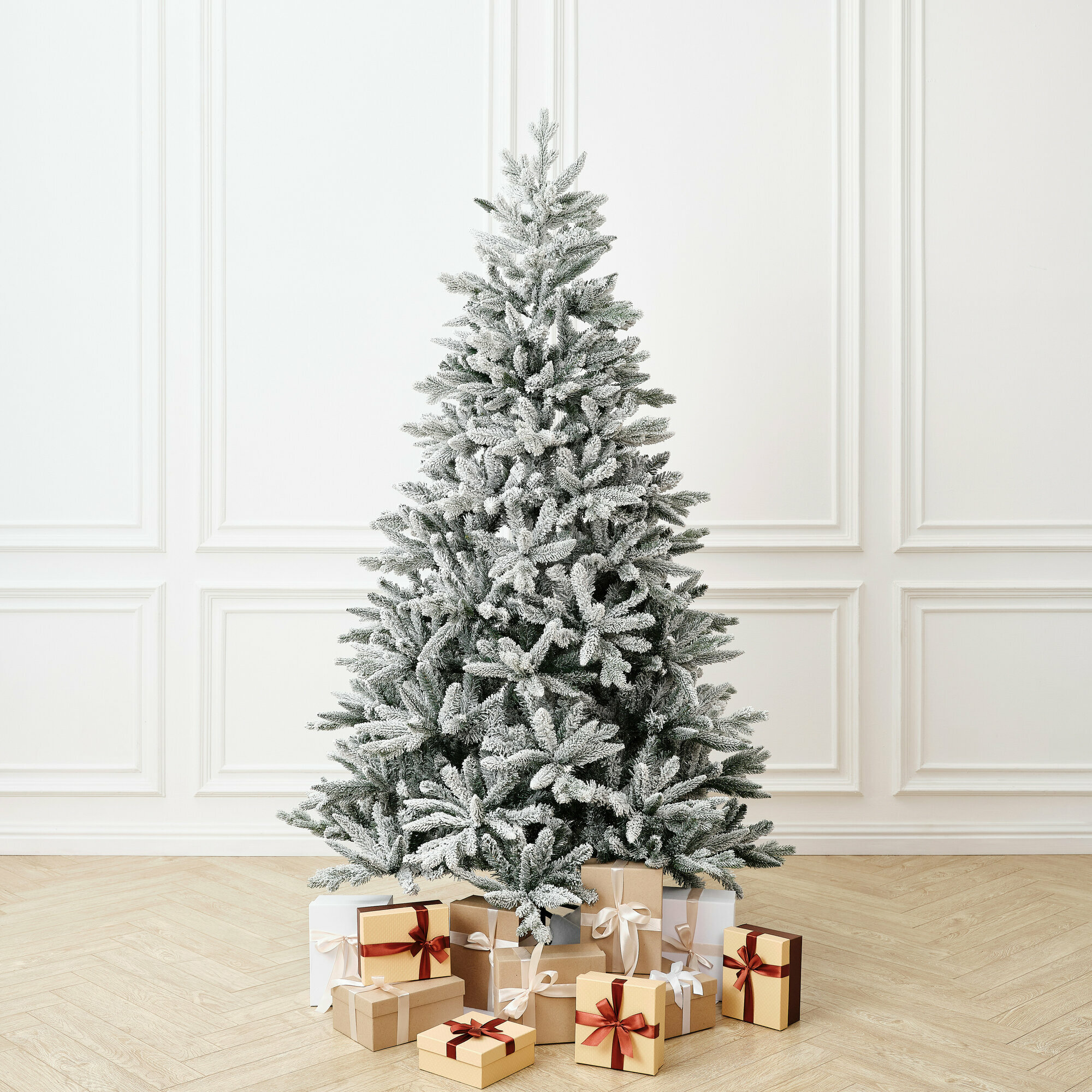 Искусственная заснеженная елка Noёl - премиальная новогодняя ель, имеющая правильный силуэт и натуральный вид приснеженной хвои, словно усыпана настоящим снегом в лесу.