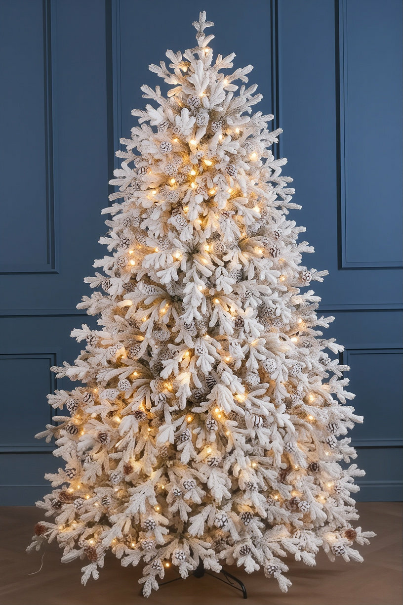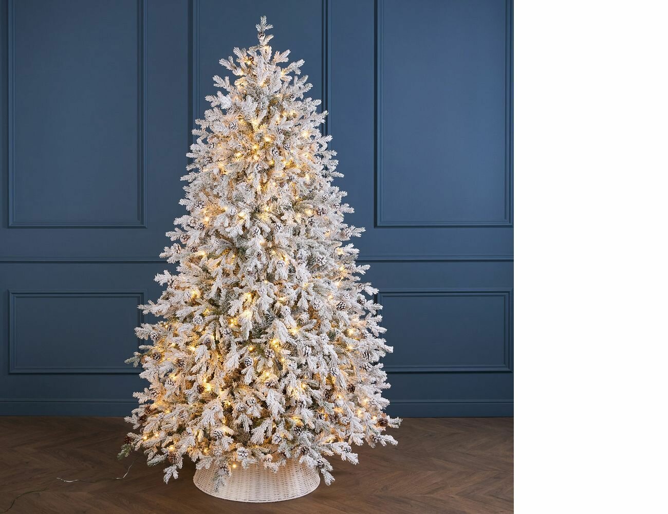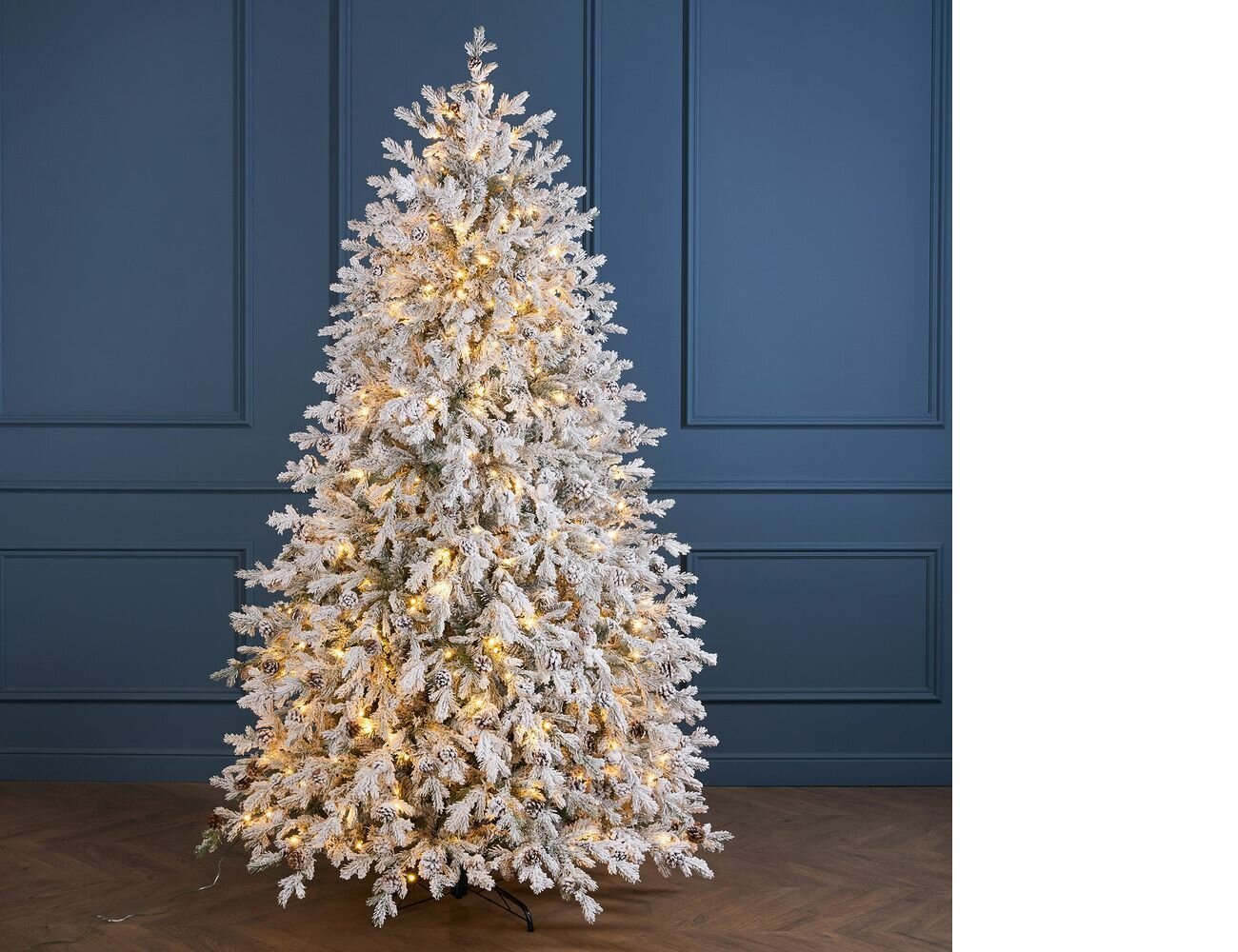 Купить Искусственная елка с лампочками кедровая заснеженная 240 см, 450 теплых белых LED ламп, литая + ПВХ, Winter Deco 1001029 с доставкой по всей России.