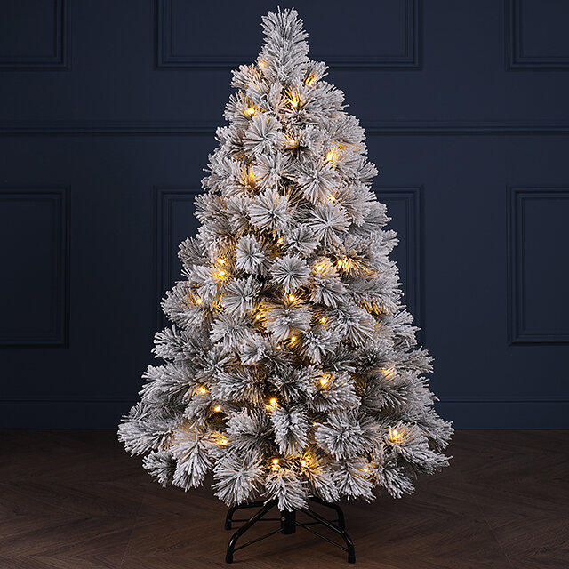 Купить Искусственная елка с лампочками Монблан заснеженная 120 см, 100 теплых белых LED ламп, леска, Winter Deco, 2000125 с доставкой по всей России.